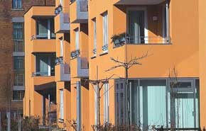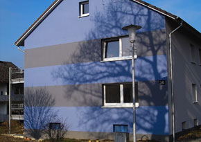 Gerade bei der Sanierung von Altbauten und Wohnungsbau bietet die Farbgestaltung eine gute Möglichkeit, kostengünstig ein attraktives Erscheinungsbild zu erzielen. |
