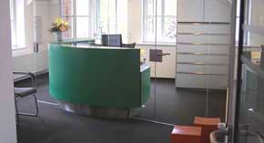 Die psychologische Wirkungsweise der Farben ist für diese Bereiche von großer emotionaler Bedeutung. Die Farben bestimmen entscheidend die Atmosphäre der gestalteten Räume und damit die Gefühle der Menschen, die sich darin aufhalten müssen. Über den Einsatz bestimmter, auf den Nutzungsbereich bezogener Farbkombinationen wird ein positives Stimmungsbild erzielt. Die proportionale Farbanordnung schafft Gliederung und Orientierungshilfe. Bei Altbausubstanz werden bestehende Farben und Materialien geschickt in die Planung eingebunden. |