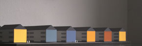 Die Farbgestaltung der Fassaden ist aus städtebaulicher Sicht an den vorhandenen Baukörper des historischen Tabakspeichers gekoppelt. Die Farbtönung wird von den Nutzern und den Einwohnern der Stadt Bünde als positives Farberlebnis geschildert. Für die Bewohner ist die markante Farbigkeit zu ihrem persönlichen Zuhause geworden. Im Innenbereich setzt sich die Farbstimmung fort und wirkt durch Farbmarkierung bestimmter Bereiche als Orientierungshilfe. |